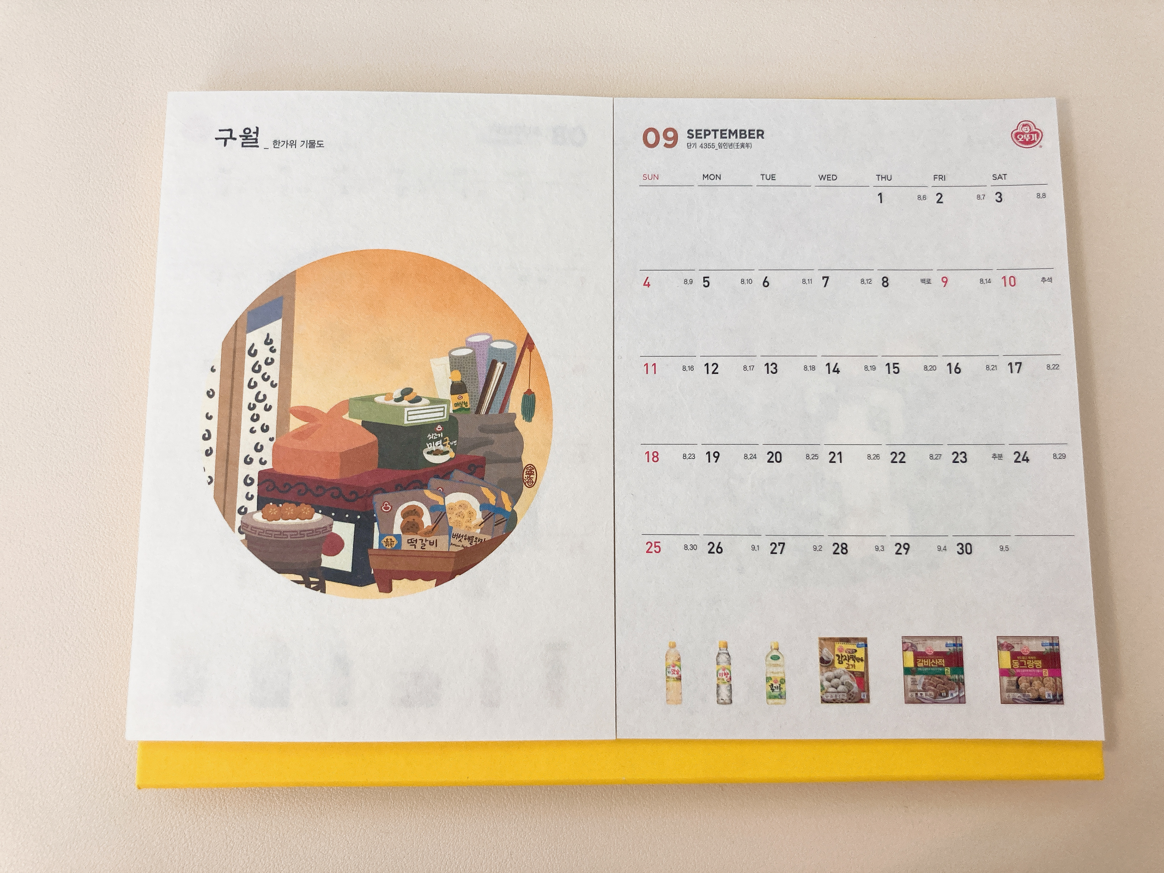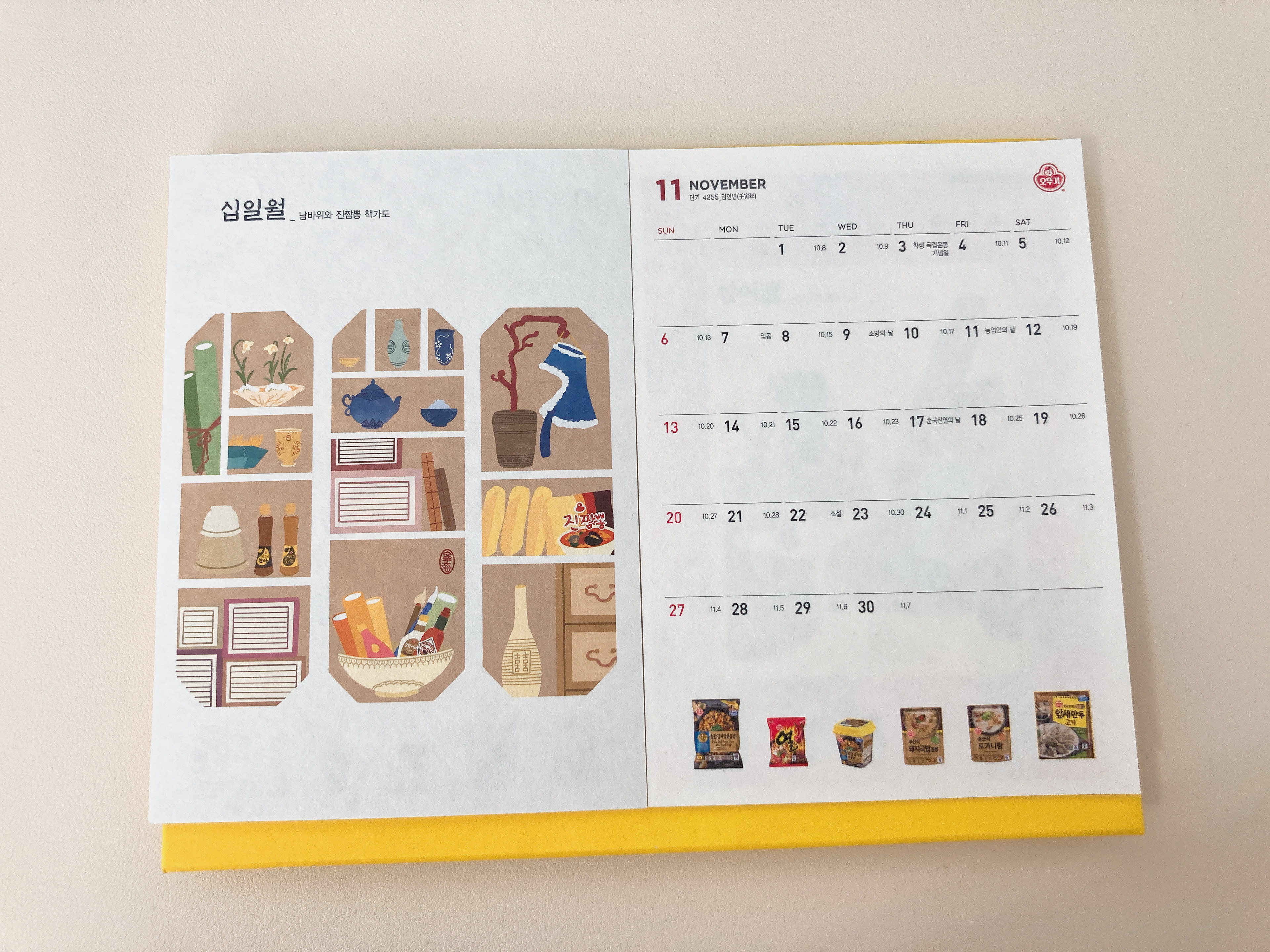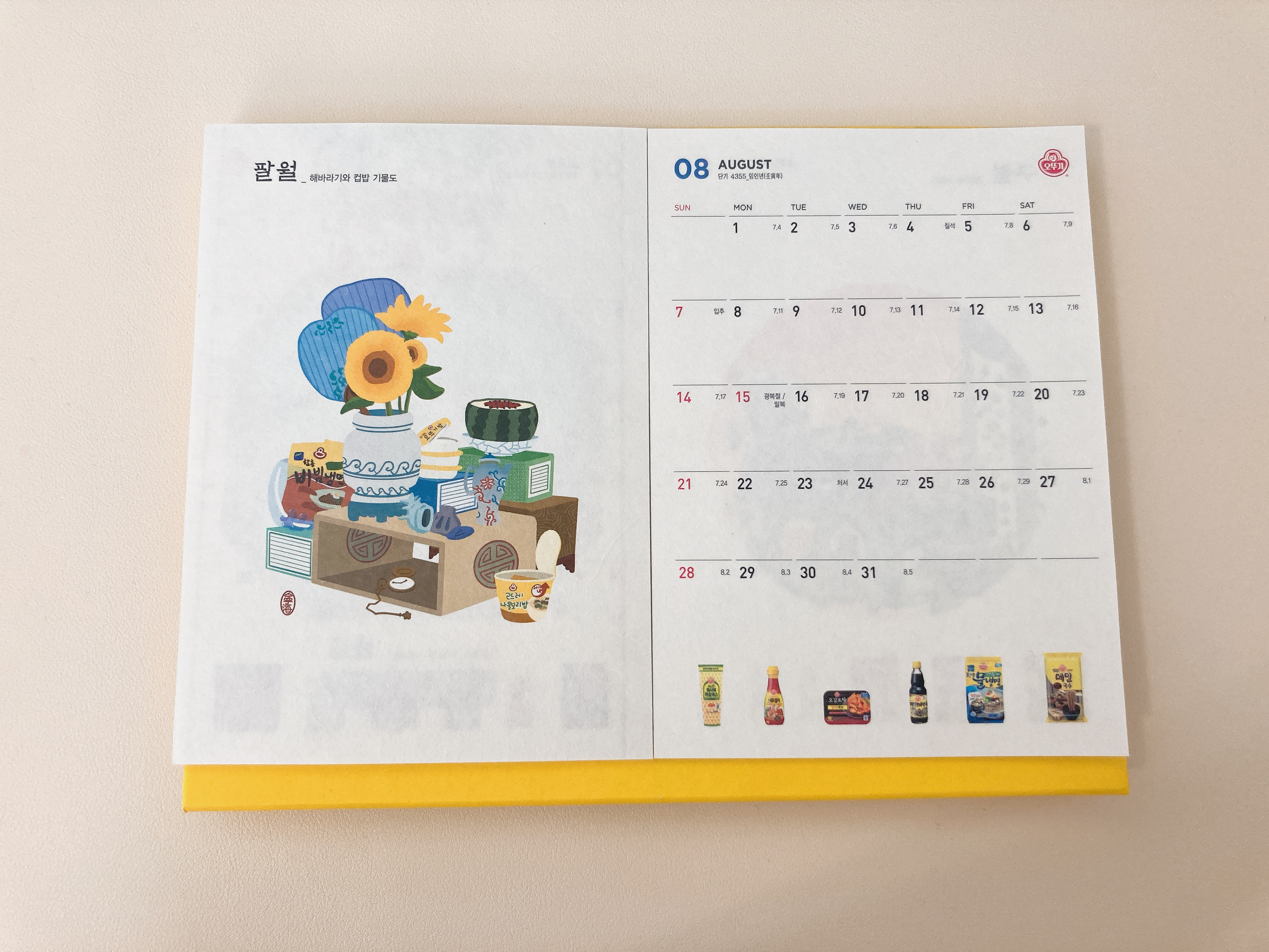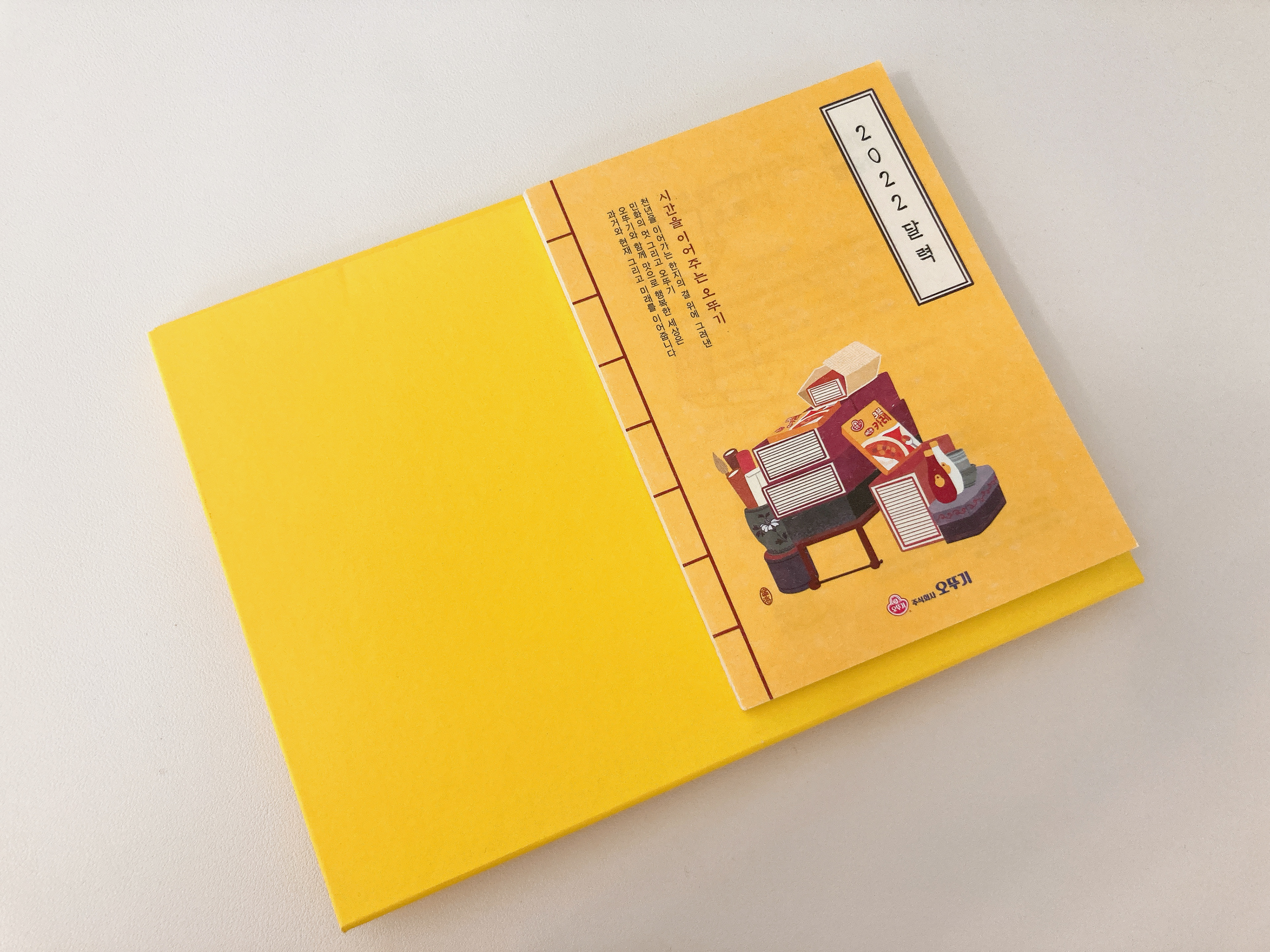 Ottogi commissioned a series of illustrations for their 2022 calendar. A digital illustration was created for each month, featuring recommended food and sauce products from the company. The style was inspired by traditional Korean folk illustrations, and the calendars were printed on Hanji, a traditional Korean mulberry paper.